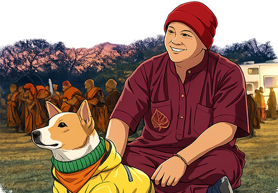 #straydog in India, but during a previous peace walk, he simply started following the monks — and never stopped. Through heat, rain, illness, and injury, he chose the road. Over time, that loyalty earned him a permanent place in the group.